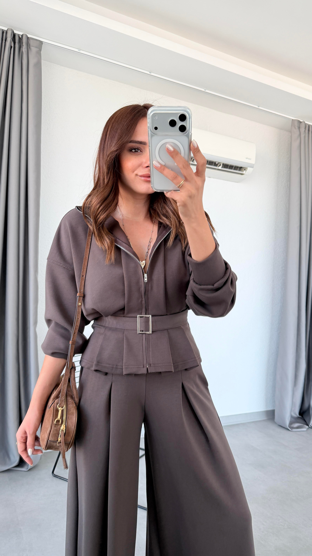 Atlantis Beli Kemerli Pensli Pantolon Takım | Pelin Yıldız Butik | Mersin Butik