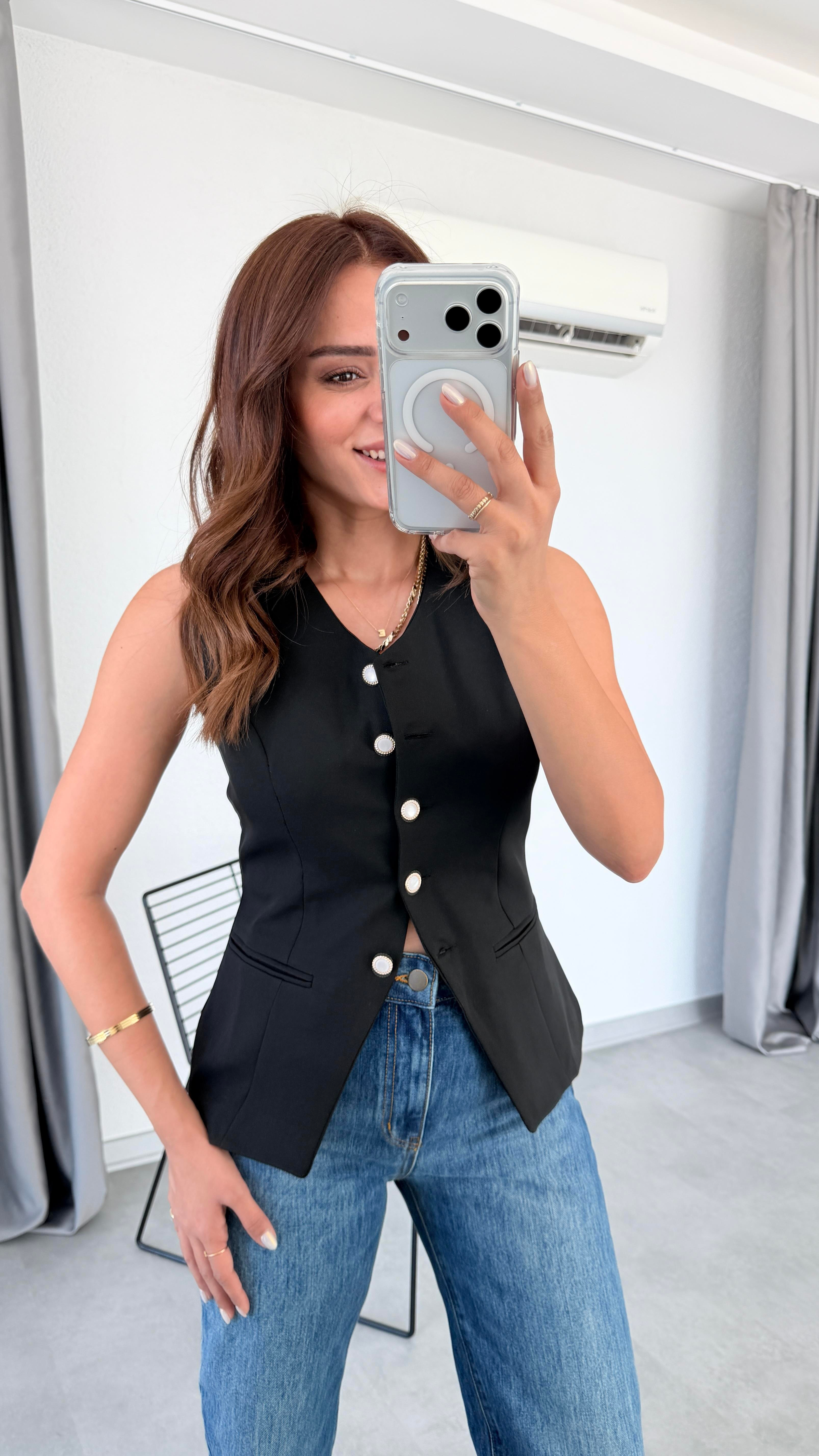 Riga Belden Oturtma Detaylı Düğmeli Yelek
