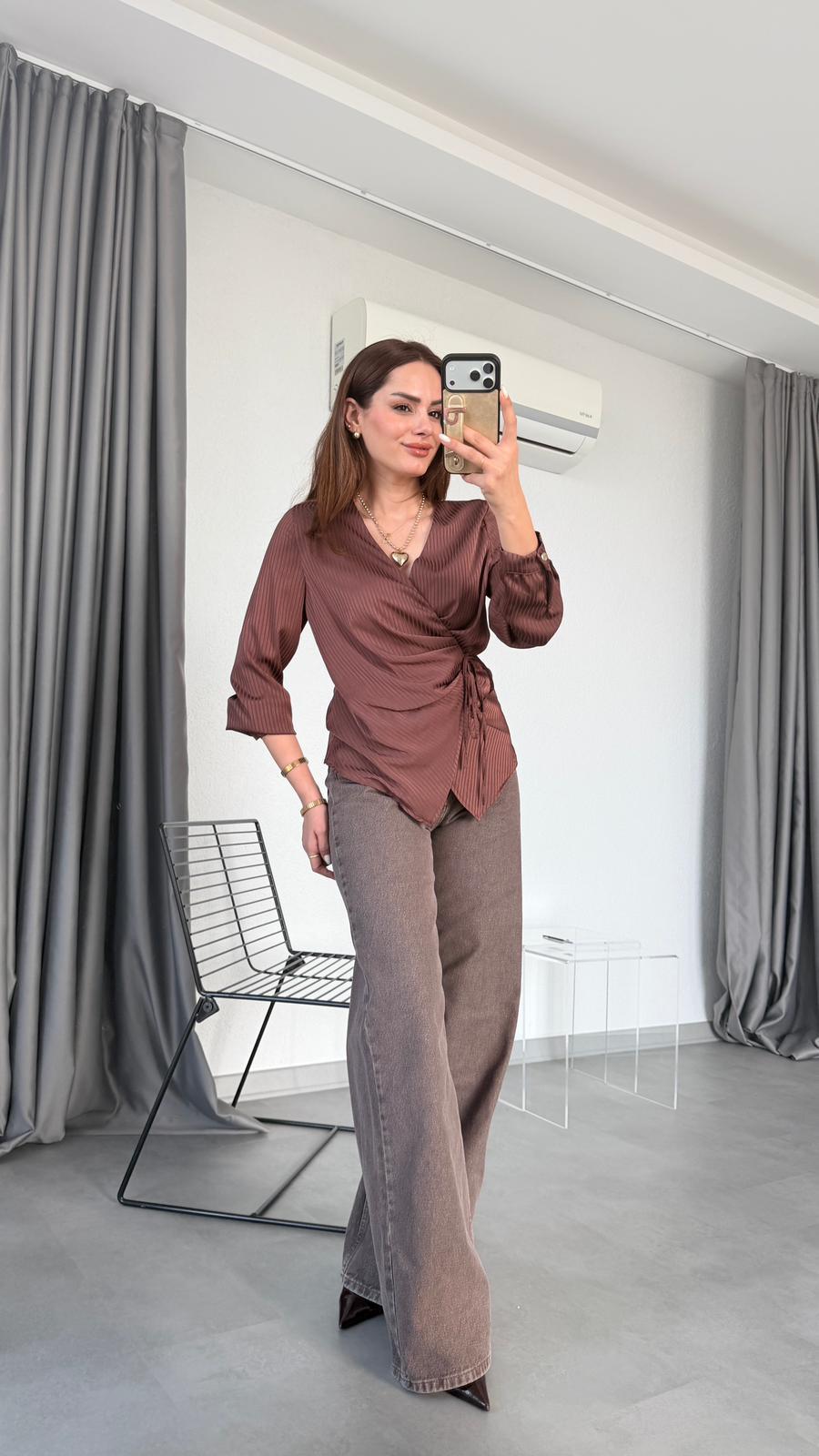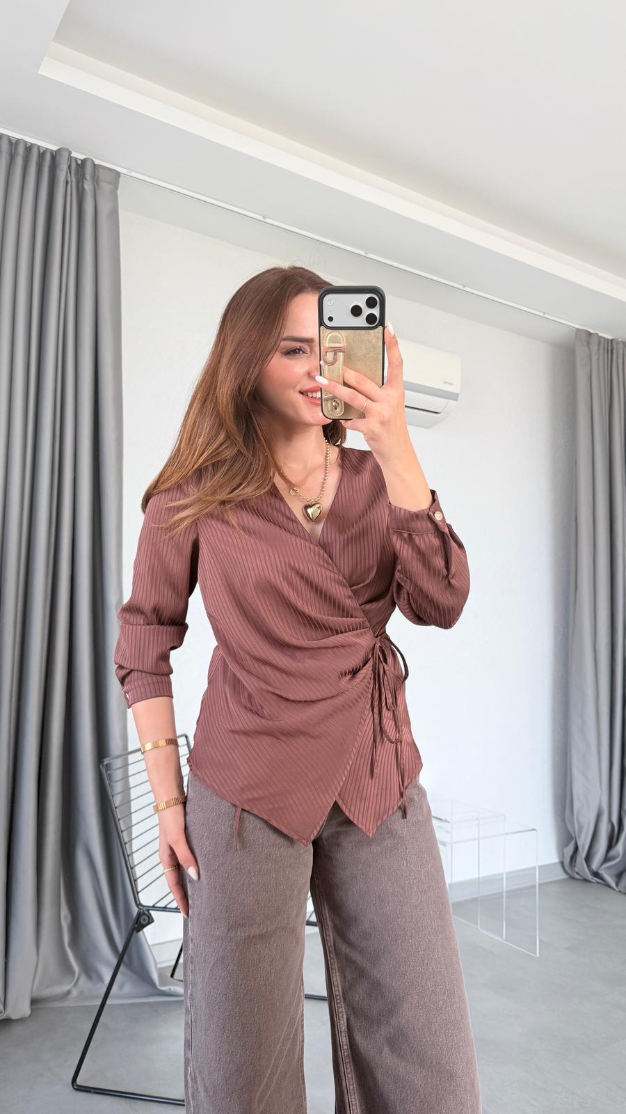 Fabia Pileli Kruvaze Bağlamalı Gömlek