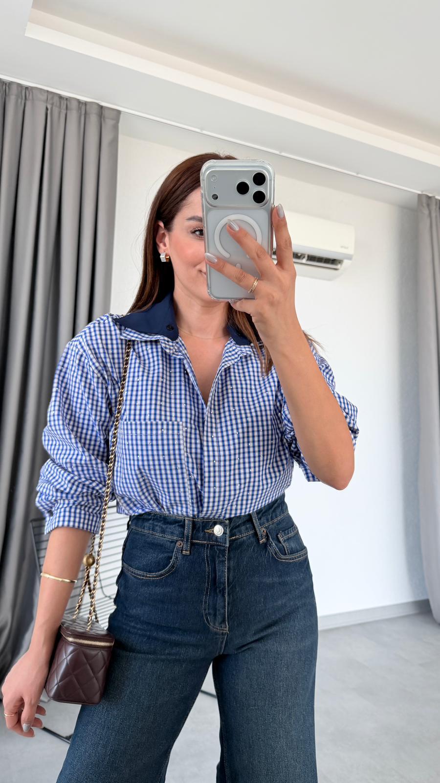 Pelin Yıldız Butik | Liana Yakası Garnili Kareli Gömlek | Mersin Butik