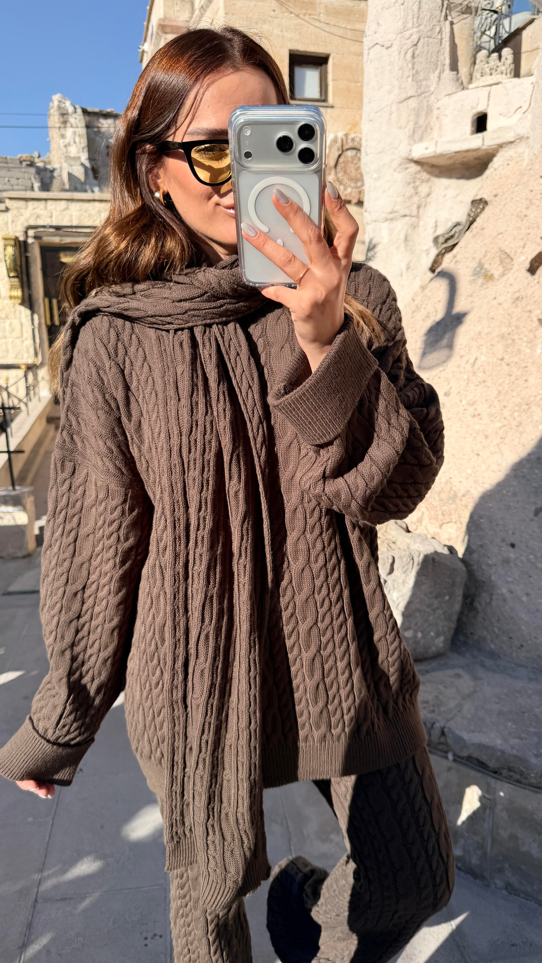 Saç Örgülü Atkılı Triko Takım